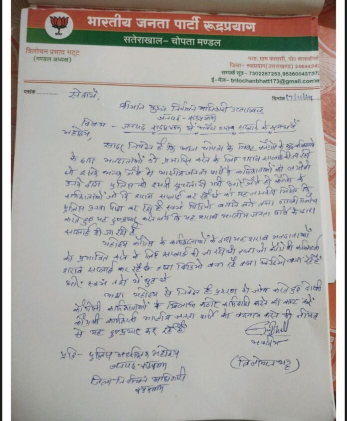 भाजपा मंडल अध्यक्ष ने तत्काल मुख्य निर्वाचन अधिकारी को पत्र लिखकर मामले की जांच की मांग की है।