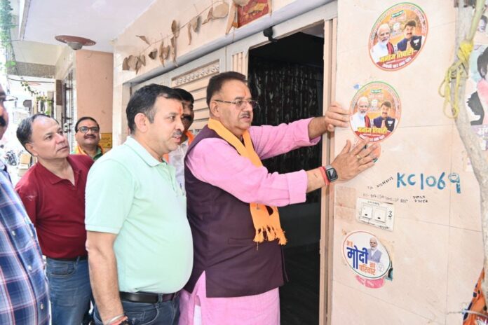कैबिनेट मंत्री ने फिर एक बार मोदी सरकार, अबकी बार 400 पार के लगाए स्टीकर, पत्रक भेंट कर क्षेत्रवासियों से भाजपा प्रत्याशी मनोज तिवारी के पक्ष में मतदान की अपील की