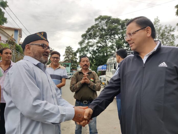 जिला चमोली भ्रमण के दौरान स्थानीय व्यापारियों से मिले मुख्यमंत्री धामी
