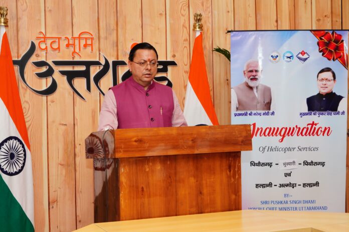 मुख्यमंत्री श्री पुष्कर सिंह धामी ने बुधवार को क्षेत्रीय संपर्क योजना (उड़ान योजना) के अंतर्गत पिथौरागढ़-मुनस्यारी-पिथौरागढ़ एवं हल्द्वानी-अल्मोड़ा-हल्द्वानी हवाई सेवाओं का मुख्यमंत्री आवास से वर्चुअल माध्यम से शुभारंभ किया। मुख्यमंत्री ने कहा कि इन हवाई सेवाओं के शुरू होने से राज्य के दूरस्थ क्षेत्रों में आम नागरिकों का आवागमन सुगम होगा।
