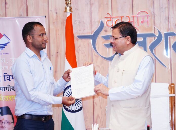 मुख्यमंत्री श्री पुष्कर सिंह धामी ने सोमवार को मुख्यमंत्री आवास में परिवहन विभाग के अन्तर्गत सम्भागीय निरीक्षक (प्राविधिक) पद पर नियुक्त 08 अभ्यर्थियों को नियुक्ति पत्र प्रदान किये। उन्होंने सभी अभ्यर्थियों को बधाई देते हुए कहा कि यह आपके जीवन की नई शुरूआत है। उन्होंने आशा व्यक्त की कि नव चयनित अभ्यर्थी अपने कार्यक्षेत्र में नवाचार करेंगे और परिवहन विभाग में अपना महत्वपूर्ण योगदान देंगे।