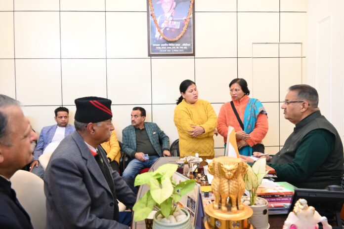 देहरादून, 05 फरवरी। प्रदेश के कृषि एवं ग्राम्य विकास मंत्री गणेश जोशी ने बुधवार को अपने कैंप कार्यालय में जनसुनवाई कार्यक्रम के दौरान विभिन्न क्षेत्रों से आए फरियादियों ने अपनी समस्याओं को मंत्री गणेश जोशी के समक्ष रखा।