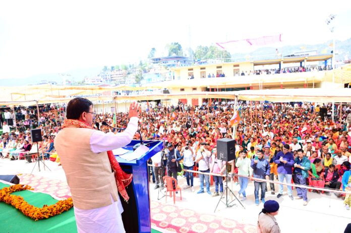 मुख्यमंत्री ने डीडीहाट जिला पिथौरागढ़ में भाजपा प्रत्याशी अजय टम्टा के समर्थन में की जनसभा