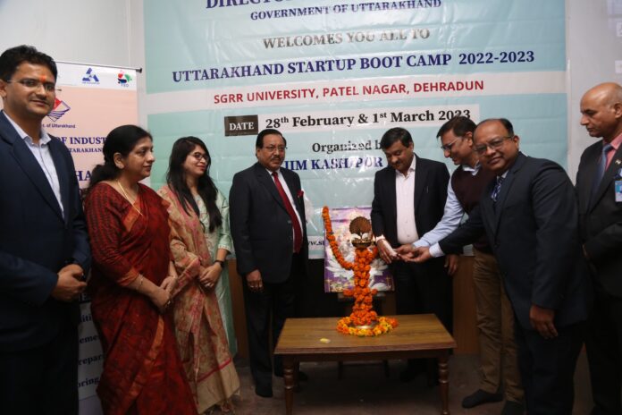 श्री गुरु राम राय विश्वविद्यालय परिसर में उत्तराखण्ड स्टार्टअप, उत्तराखण्ड सरकार द्वारा प्रायोजित बूट कैम्प का उद्घाटन मुख्य अतिथि एस.सी. नौटियाल, निदेशक उद्योग, उत्तराखण्ड सरकार व डॉ उदय सिंह रावत, कुलपति श्री गुरु राम राय विश्वविद्यालय ने संयुक्त रूप से किया। मुख्य अतिथि एस.सी. नौटियाल अपने उद्बोधन में उत्तराखण्ड सरकार द्वारा विभिन्न स्टार्टअप योजनाओं के बारे में जानकारी दी। उन्होंने कहा कि विद्यार्थियों को नये स्टार्टअप अवसरों को खोजने और उन पर कार्य करने लिए पहल करनी होगी। बाजार की वर्तमान मांग के अनुरूप राज्य सरकार की कई योजनाएं प्रचलित हैं। युवा उन योजनाओं का लाभ लेकर रोजगार के स्वर्णिम अवसरों पर काम कर सकते हैं।