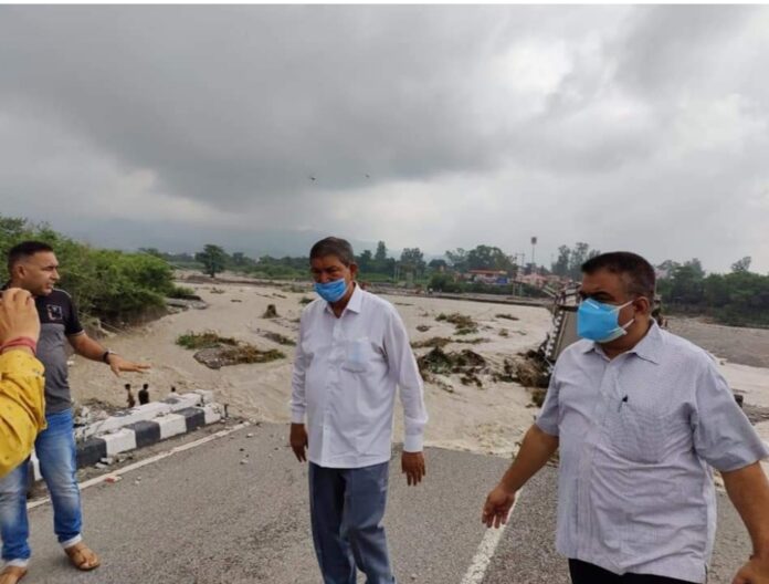 पूर्व मुख्यमंत्री हरीश रावत ने किया टूटे रानीपोखरी पुल का निरीक्षण , सीएम धामी से की  ये बड़ी मांग