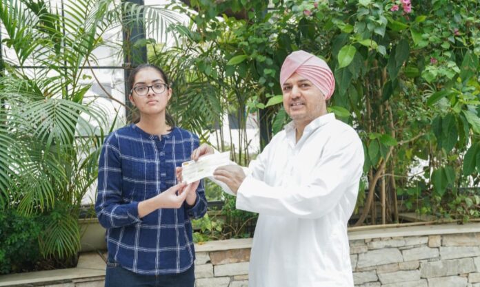 श्री गुरु राम राय यूनिवर्सिटी की ओर से श्री महाराज जी ने शगुन को 25000/ रुपए का चेक प्रोत्साहन स्वरुप प्रदान किया
